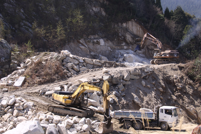椿石採石場は、1986年(昭和61年)より採石を始め、標高760mの椿山系の東麓に 位置していることから「椿石」と名づけました。硬質な花崗岩で、吸水率・気孔率ともに国産の石の中でも最も少ないほうである為 磨きの艶が落ちにくく風化に強いので、墓石材に最も適していると言われています。 石目も中目で飽きのこない落ち着いた色合いです。近年、地元九州以外からも 注目されています。